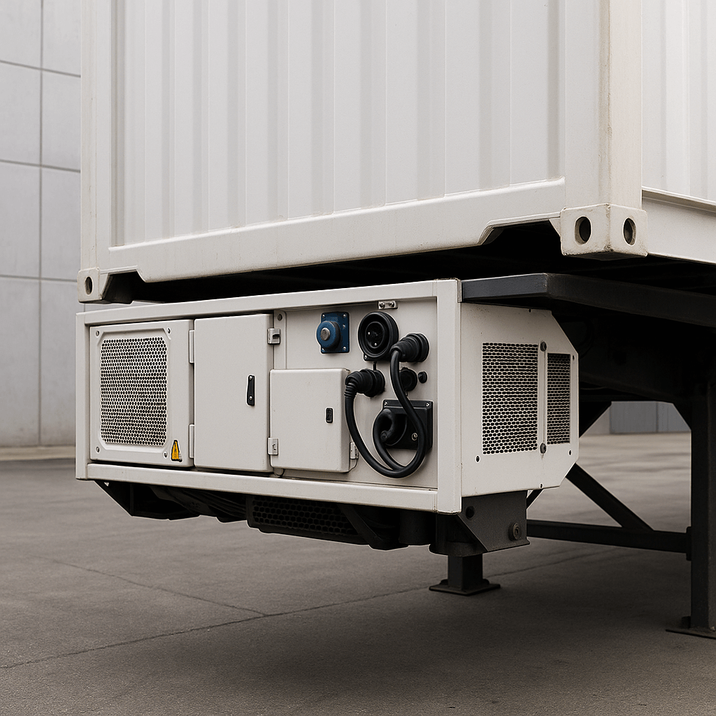 An undermount genset is a compact generator designed to power refrigerated containers (reefers). These gensets are typically mounted directly under the container to provide a reliable, mobile power source while reducing the need for external electricity.